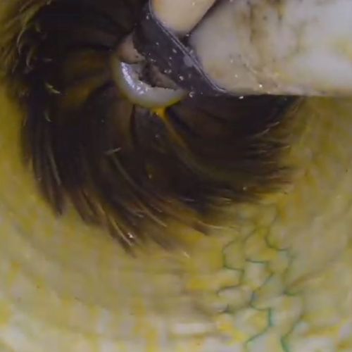 La condotta viene pulita accuratamente: rimozione di residui, sedimenti e parti incoerenti con sistemi meccanici (anche spazzole rotanti), così la resina può aderire correttamente.